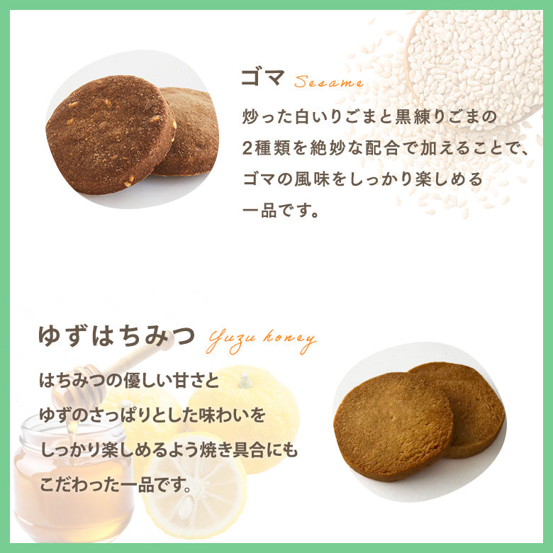 ・入り数:40枚(ゴマ・アールグレイ 12枚ずつ、レモン、ゆずはちみつ 8枚ずつ)
